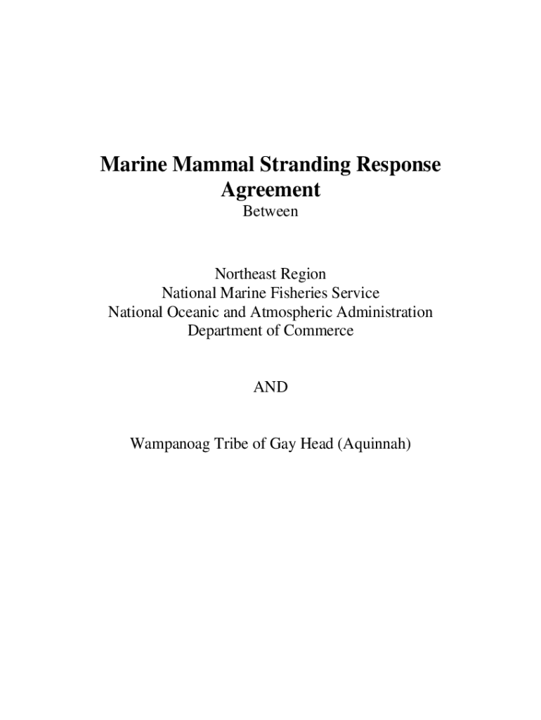Marine Mammal Stranding Response Agreement Between Northeast Region National Marine Fisheries Service National Oceanic and Atmospheric Administration Department of CommerceANDWampanoag Tribe of Gay