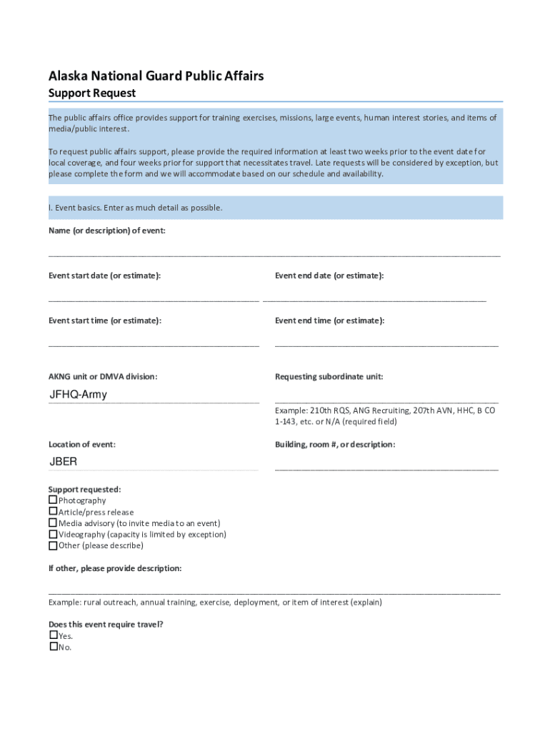 Get the free Alaska National Guard Public Affairs - Support Request - ak ng