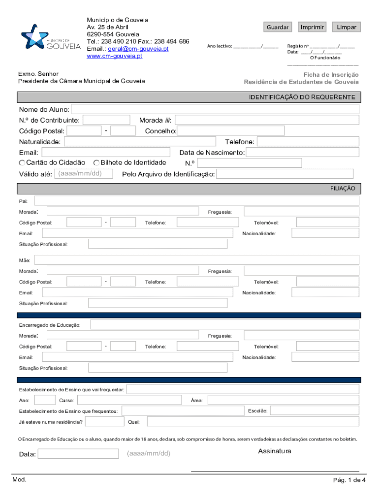 Municipal de Gouveia Av. 25 de April 6290554 Gouda Tel.: 238 490 210 Fax.: 238 494 686 Email.: geral@cmgouveia.pt www.cmgouveia.ptGuardar ANO elective: ___/___Elmo. Senior President the Clara Municipal