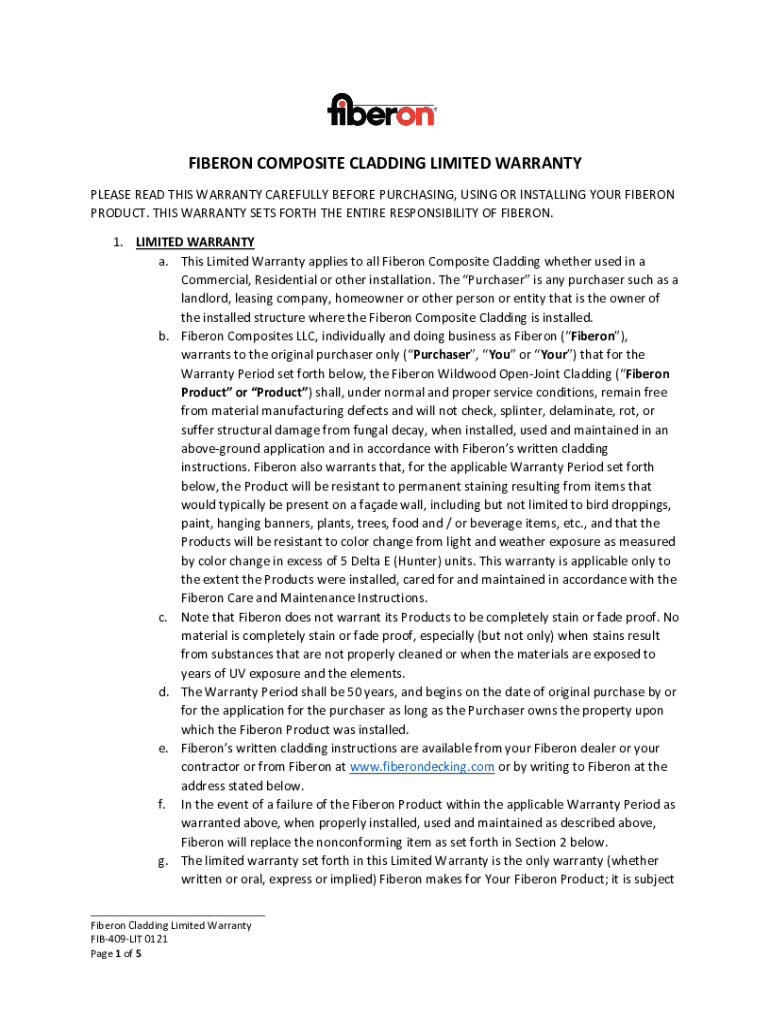 FIBER ON COMPOSITE CLADDING LIMITED WARRANTY PLEASE READ THIS WARRANTY CAREFULLY BEFORE PURCHASING, USING OR INSTALLING YOUR FIBER ON PRODUCT. THIS WARRANTY SETS FORTH THE ENTIRE RESPONSIBILITY OF