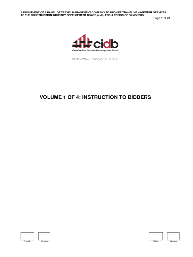 APPOINTMENT OF A PANEL OF TRAVEL MANAGEMENT COMPANY TO PROVIDE TRAVEL MANAGEMENT SERVICES TO THE CONSTRUCTION INDUSTRY DEVELOPMENT BOARD (CDB) FOR A PERIOD OF 36 MONTHS Page 1 of 23VOLUME 1 OF 4: