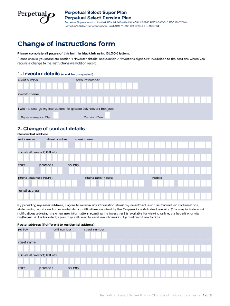 To fill out perpetuals select superannuation funds, individuals must provide details about their contributions, investment options, and fund performance.