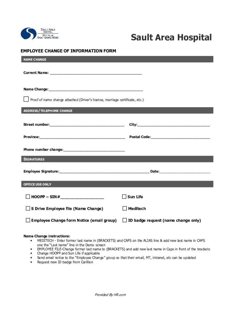 EMPLOYEE CHANGE OF INFORMATION FORM