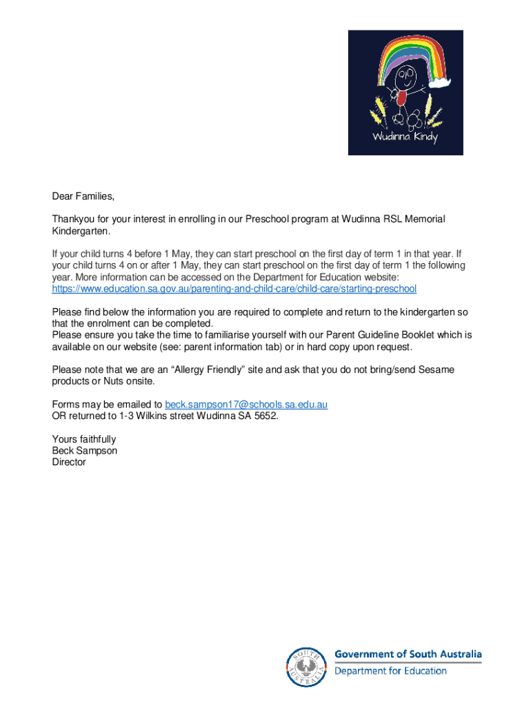 Dear Families, Thank you for your interest in enrolling in our Preschool program at Indiana SL Memorial Kindergarten. If your child turns 4 before 1 May, they can start preschool on the first day