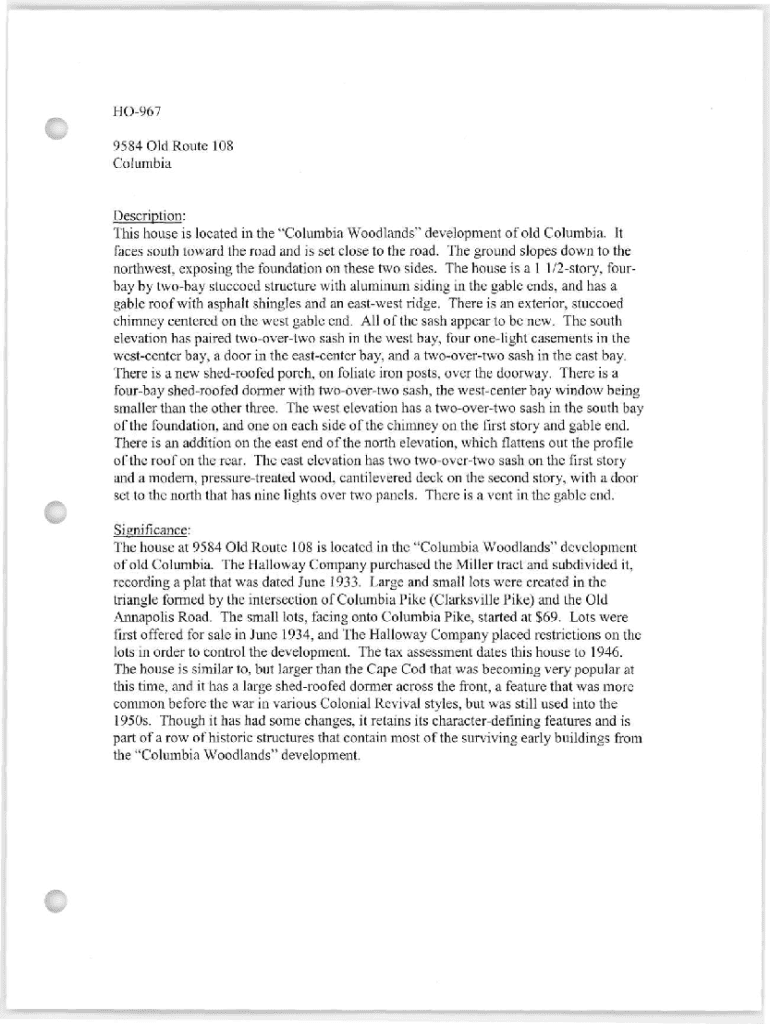 Get the free HO-967 9584 Old Route 108 Columbia Description
