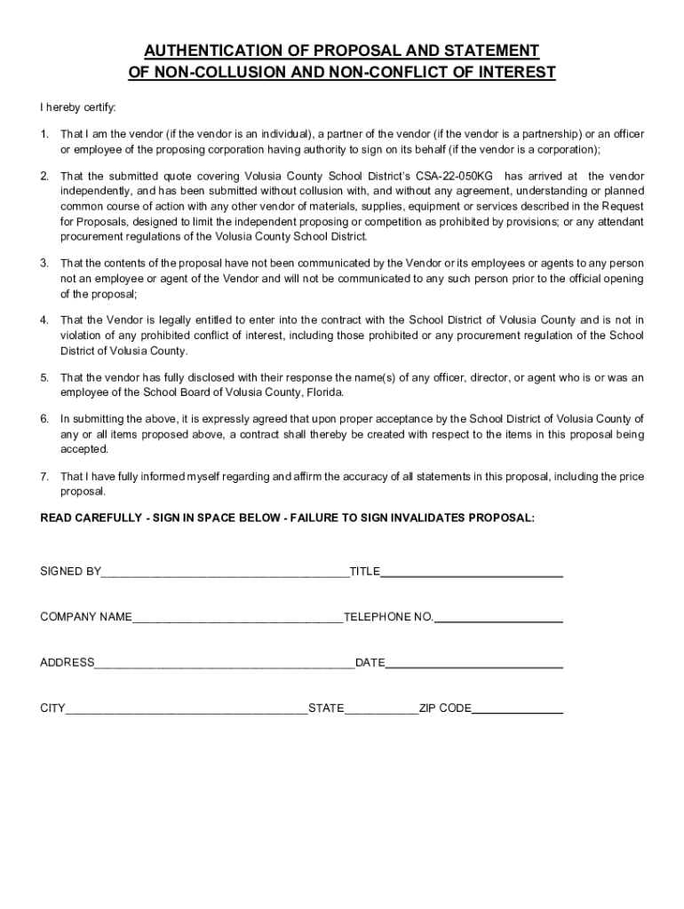 Get the free AUTHENTICATION OF PROPOSAL AND STATEMENT OF ...