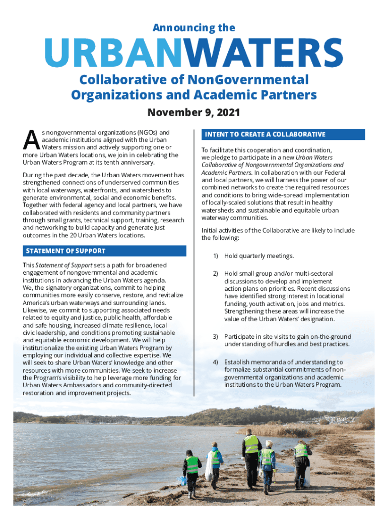 Get the free Urban Waters Collaborative of NonGovernmental Organizations and Academic Partners