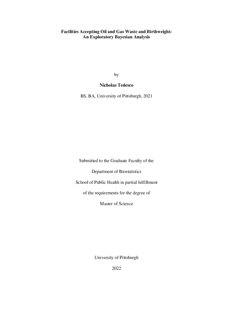 Title PageFacilities Accepting Oil and Gas Waste and Birth weight: An Exploratory Bayesian Analysis by Nicholas Tesco BS, BA, University of Pittsburgh, 2021Submitted to the Graduate Faculty of the