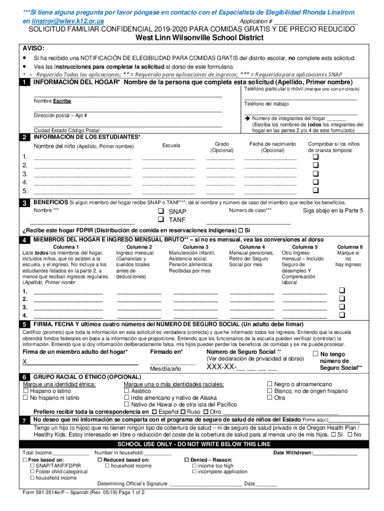 en linstror@wlwv.k12.or.usSOLICITUD FAMILIAR CONFIDENTIAL 20192020 PARA COMICS