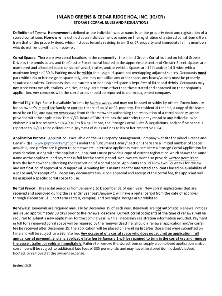 STORAGE CORRAL RULES AND REGULATIONSDefinition of Terms: Homeowner is defined as the individual whose name is on the property deed and registration of
