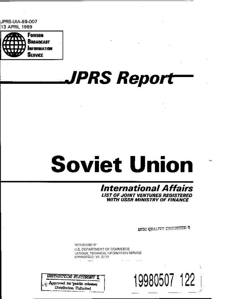 Jprs Report Soviet Union is not the form you're looking for?Search for another form here.