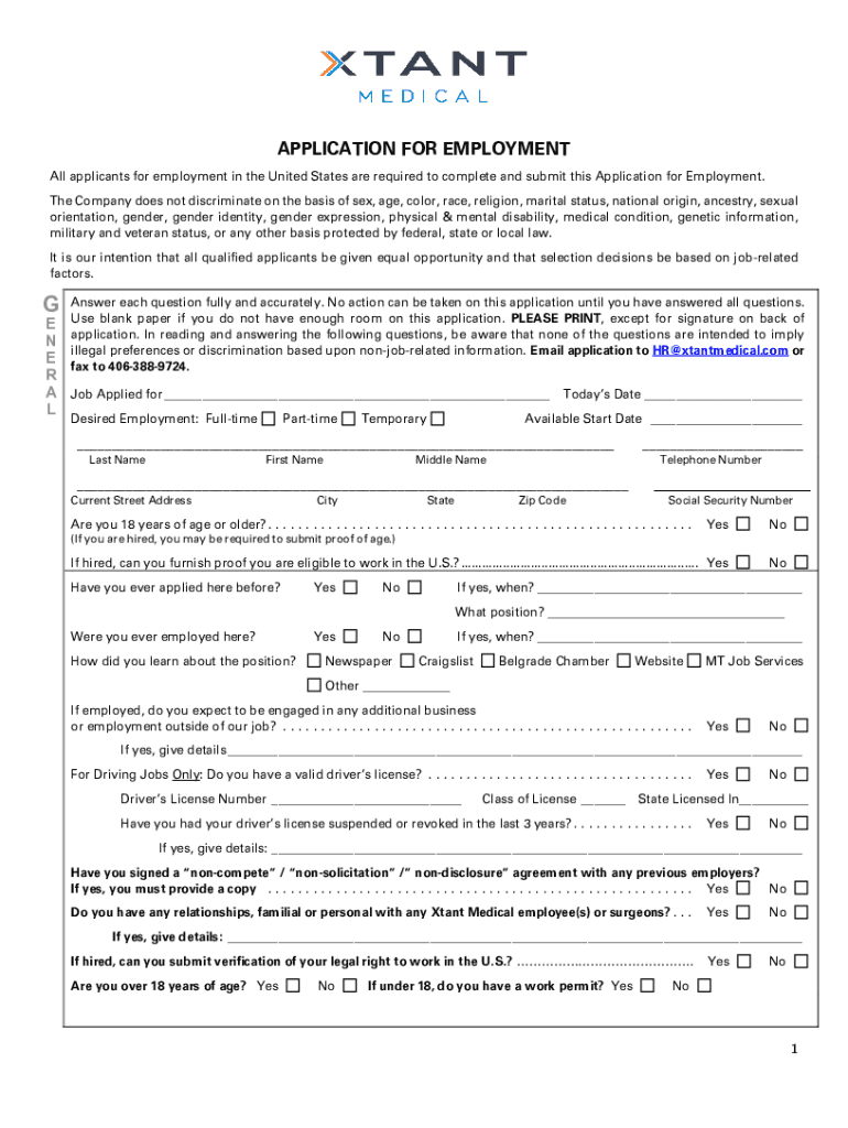 APPLICATION FOR EMPLOYMENT All applicants for employment in the United States are required to complete and submit this Application for Employment. The Company does not discriminate on the basis of