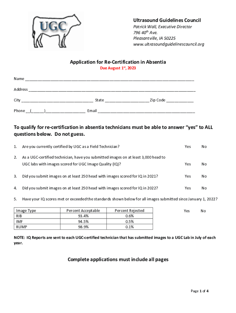 Ultrasound Guidelines Council Patrick Wall, Executive Director 796 40th Ave. Pleasantville, IA 50225 www.ultrasoundguidelinescouncil.orgApplication for ReCertification in Absent Due August 1st, 2023Name