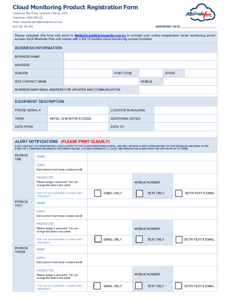 Cloud Monitoring Product Registration Form