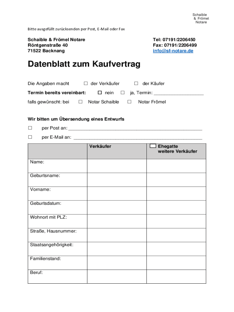 info@sfnotare.deDatenblatt sum Kaufvertrag