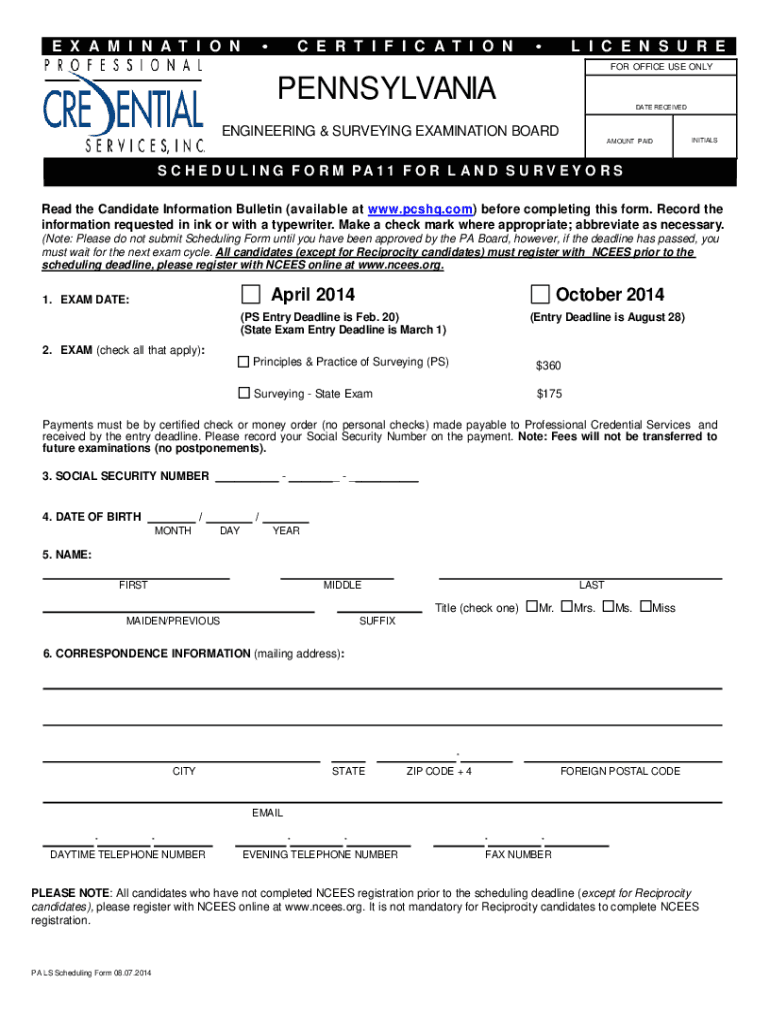 DATE RECEIVEDENGINEERING & SURVEYING EXAMINATION BOARD