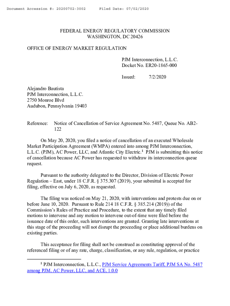 Document Accession #: 202007023002Filed Date: 07/02/2020FEDERAL ENERGY REGULATORY COMMISSION WASHINGTON, DC 20426 OFFICE OF ENERGY MARKET REGULATION PM Interconnection, L.L.C. Docket No. ER201865000