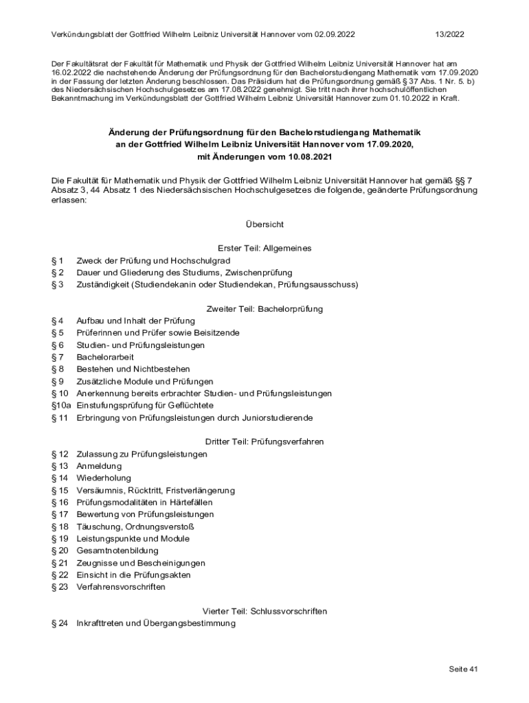 Verkndungsblatt her Gottfried Wilhelm Leibniz University Hanover com 02.09.202213/2022Der Fakulttsrat her Faculty for Mathematic UND Physic her Gottfried Wilhelm Leibniz University Hanover hat am