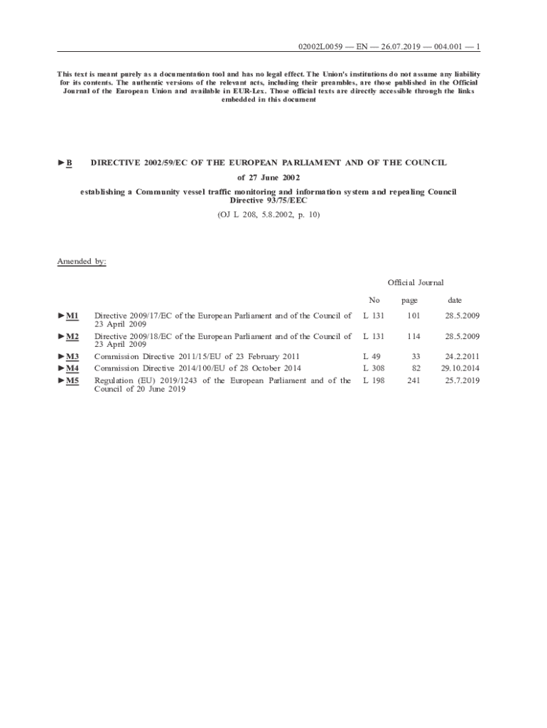 Get the free Directive 2002/59/EC of the European Parliament and of ...