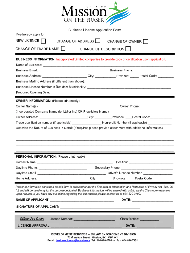 Get the free Business License Application Form - City of Mission
