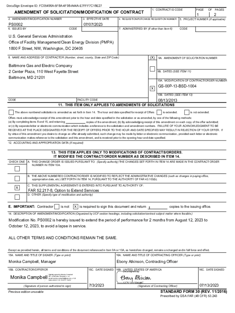 DocuSign Envelope ID: FC05496A5F8A4F98A44AE7FFF7C18E272. AMENDMENT/MODIFICATION NUMBER3. EFFECTIVE DATEPS0002PAGE1. CONTRACT ID CODEPENDENT OF SOLICITATION/MODIFICATION OF CONTRACTOF1PAGES24. REQUISITION/PURCHASE