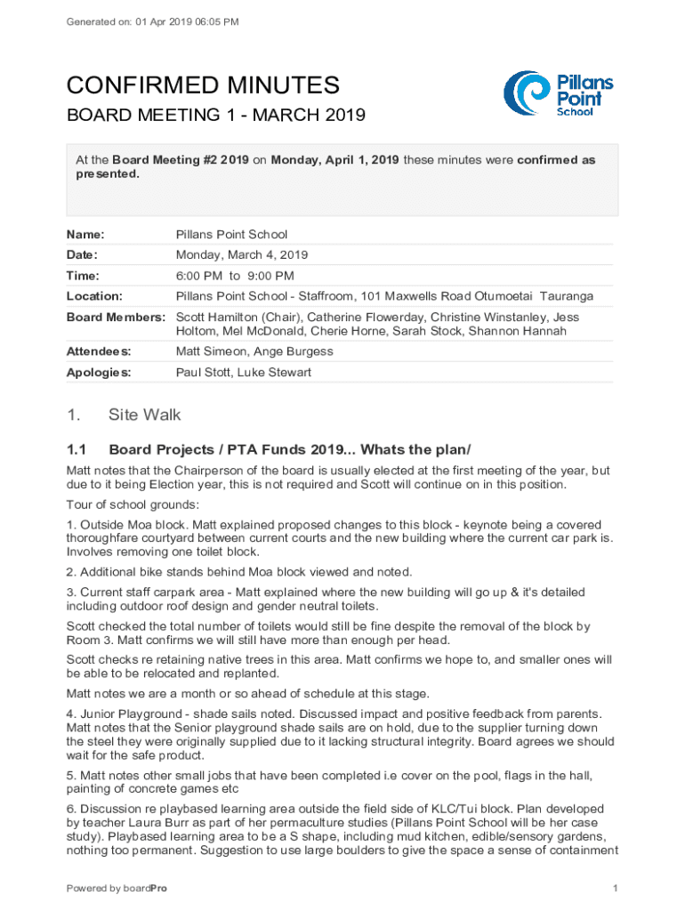 At the Board Meeting #2 2019 on Monday, April 1, 2019, these minutes were confirmed as