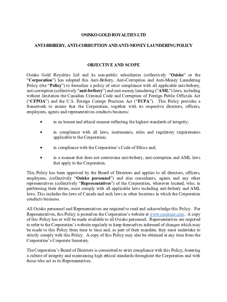 ANTIBRIBERY, ANTICORROSION AND ANTIMONY LAUNDERING POLICYOBJECTIVE AND SCOPE