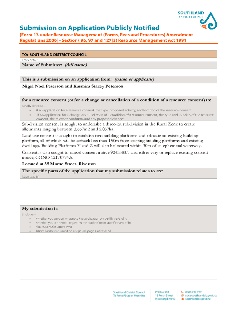 Get the free Submission on Application Publicly Notified - Form 13