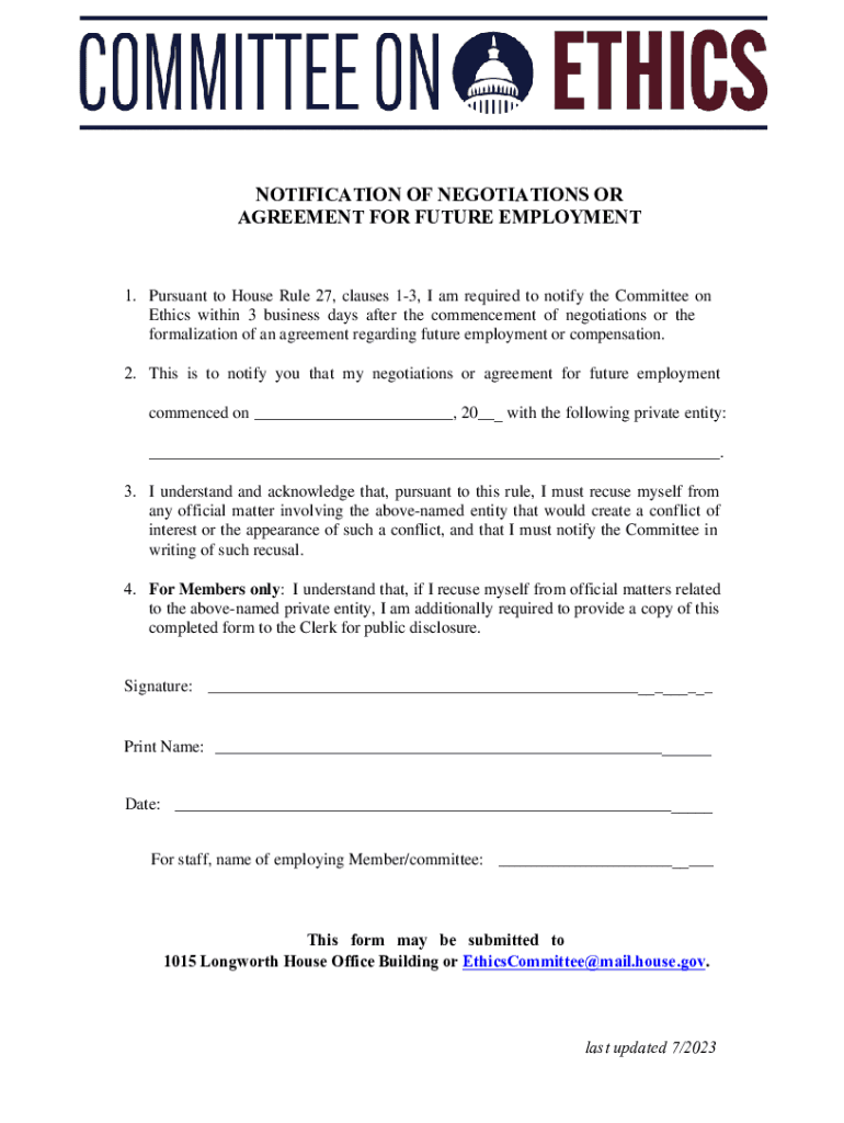 Get the free Notification of Negotiations or Agreement for Future ... - ethics house
