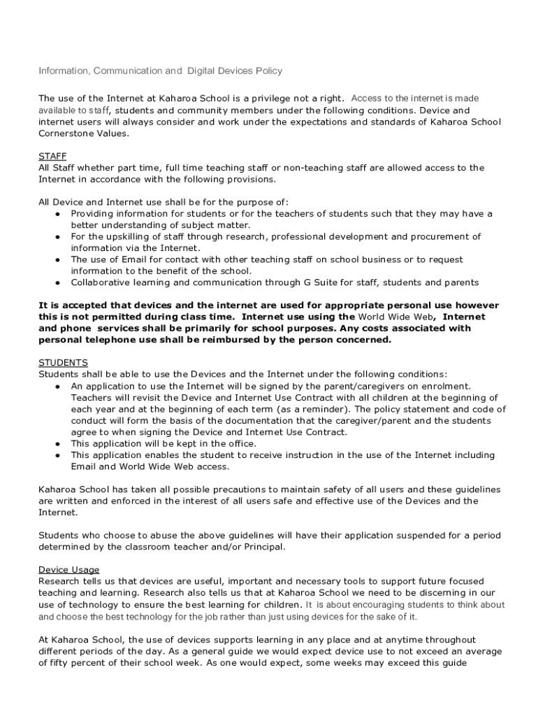 Information, Communication and Digital Devices Policy The use of the Internet at Sahara School is a privilege not a right. Access to the internet is made available to staff, students and community