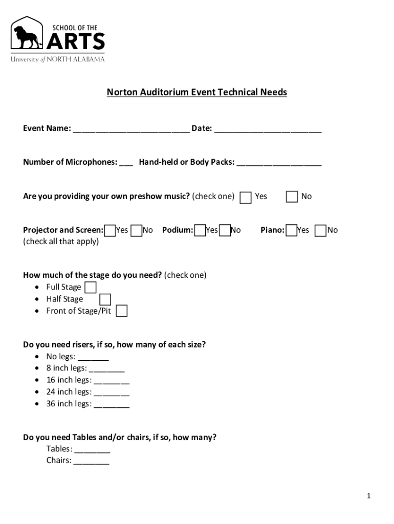 Get the free Norton Auditorium Event Technical Needs.docx