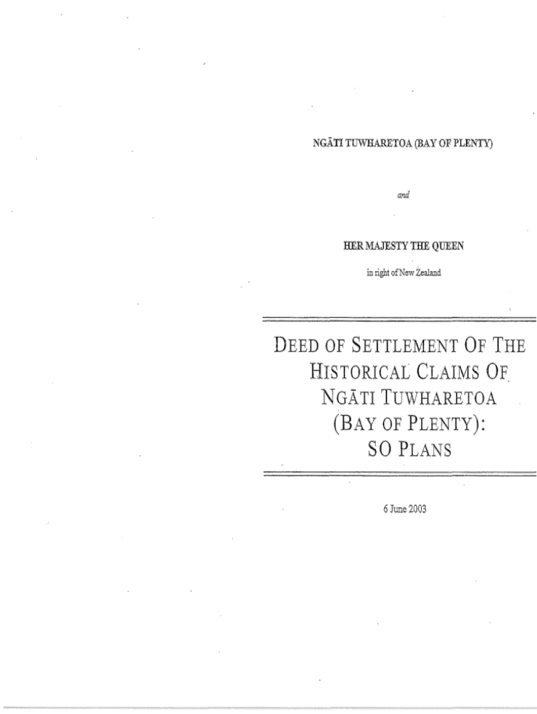 Get the free Ngati Tuwharetoa Bay of Plenty Deed of Settlement SO Plans