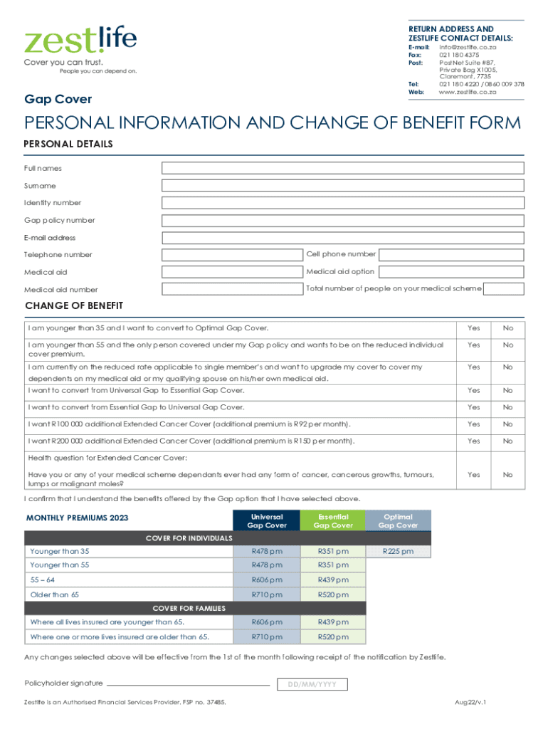 Email:Fax:Post:Tel:Web:Gap Coverinfo@zestlife.co.za