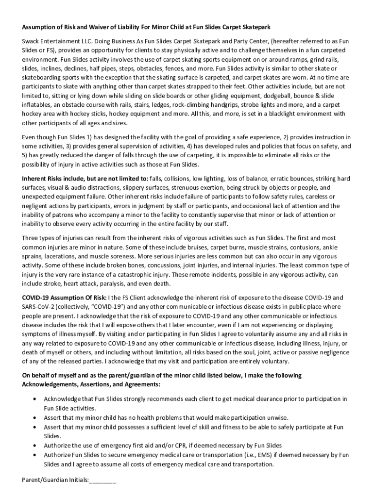 Get the free Assumption of Risk and Waiver of Liability For Minor Child ...