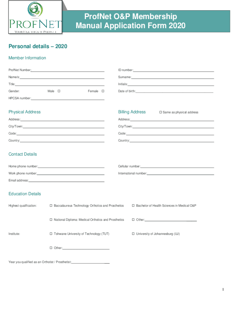 Get the free ProfNet O&P Membership Manual Application Form 2020