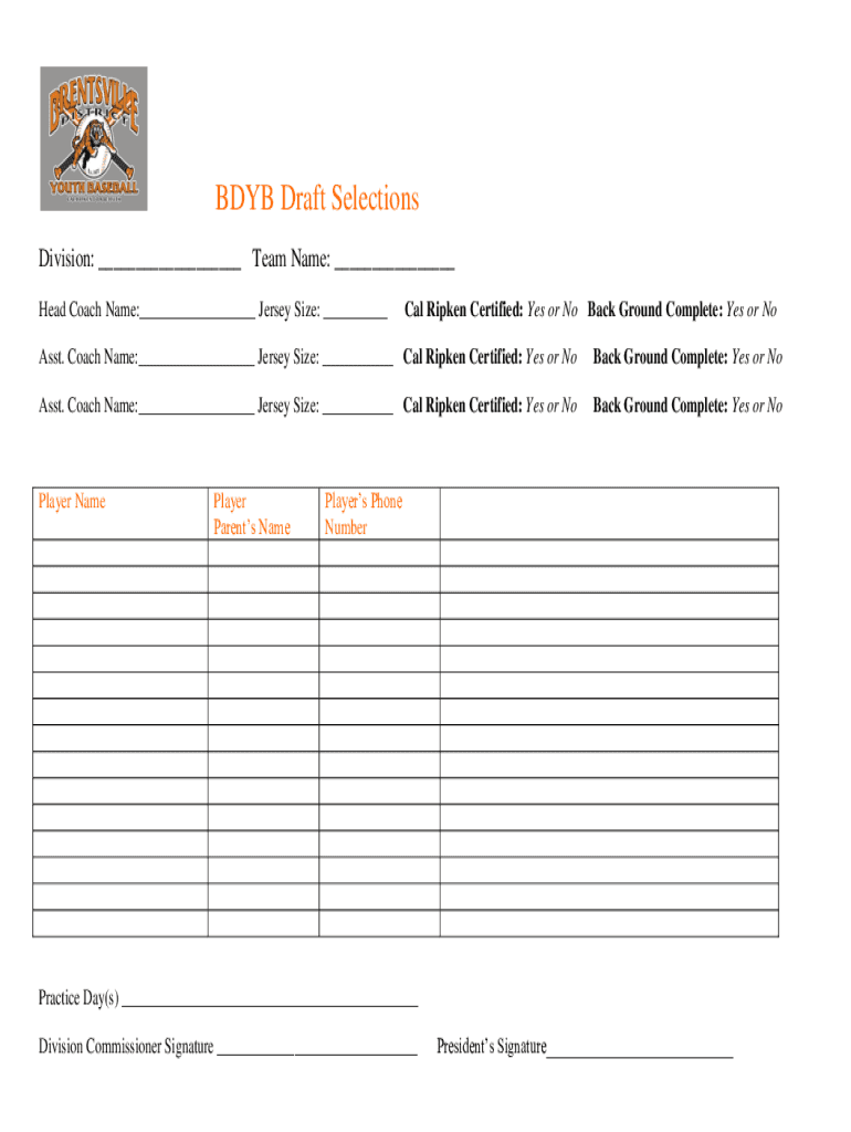 BDB Draft Selections