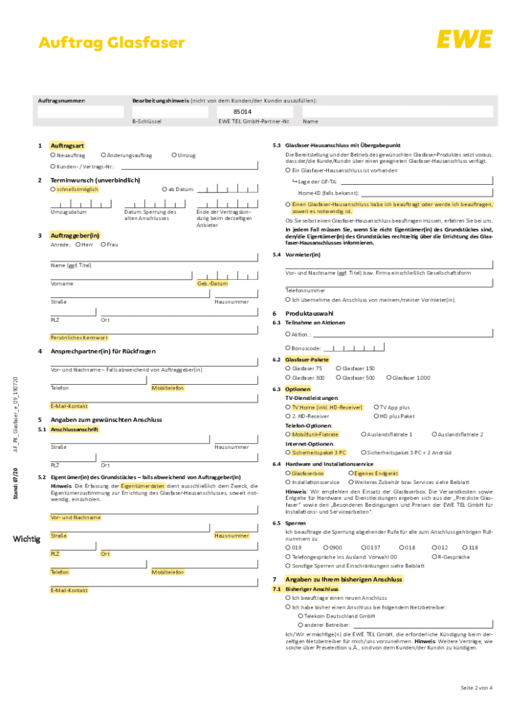 Austral GlasfaserAuftragsnummer:Bearbeitungshinweis (night on them Under/her Funding auszufllen):85014