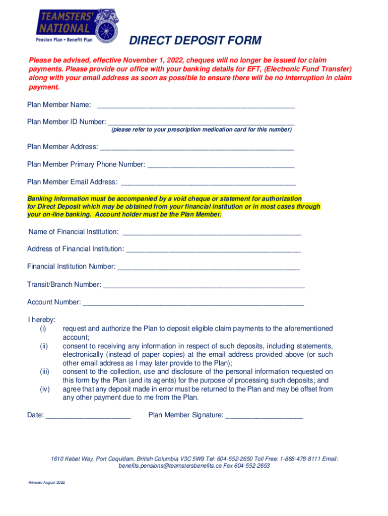 Get the free DIRECT DEPOSIT FORM - Teamsters