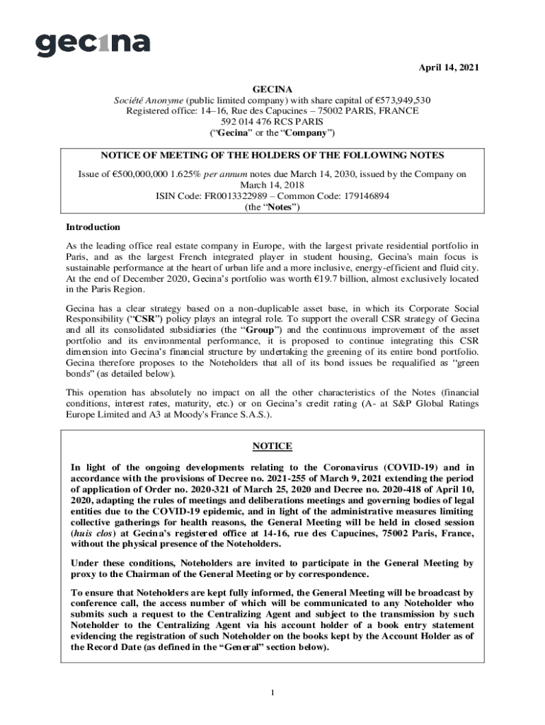 April 14, 2021, GEMINI So cit Antonym (public limited company) with share capital of 573,949,530 Registered office: 1416, Rue DES Calcines 75002 PARIS, FRANCE 592 014 476 RCS PARIS (Gemini or the