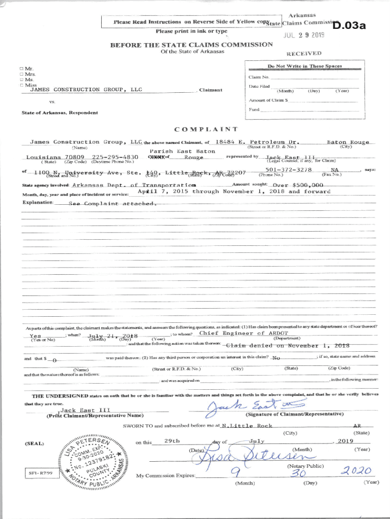 D.03aBEFORE THE ARKANSAS STATE CLAIMS COMMISSION