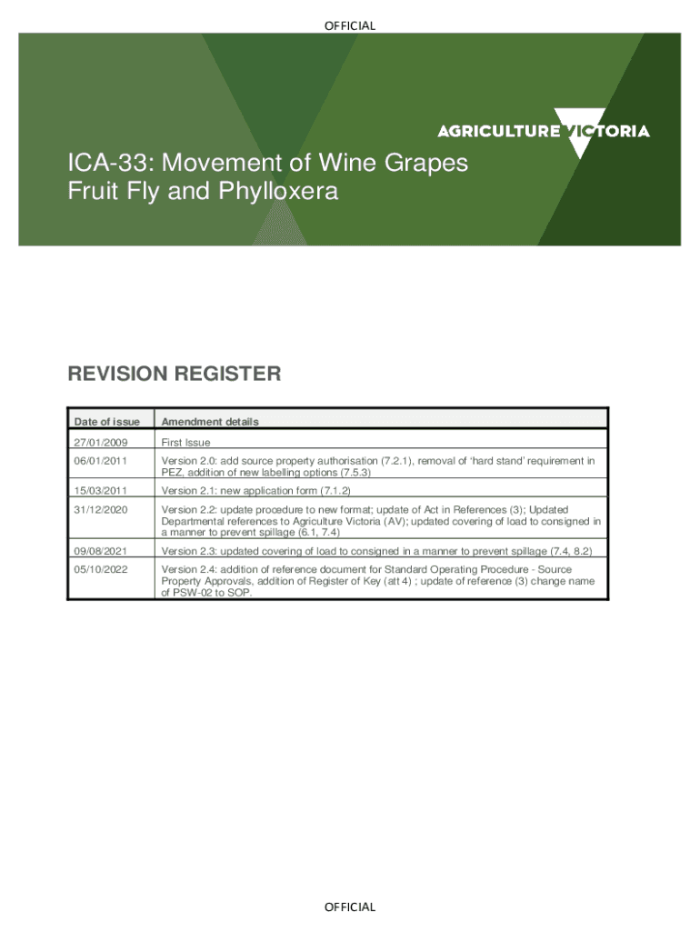 Fruit Fly and PhylloxeraREVISION REGISTER