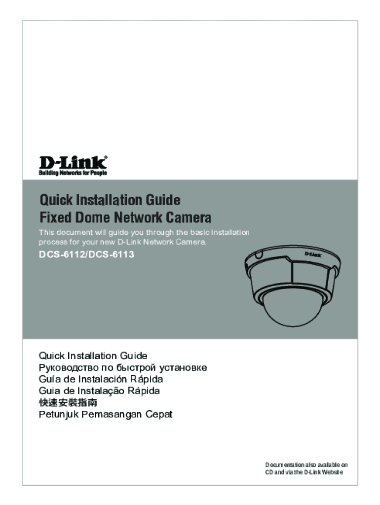 Quick Installation Guide Fixed Dome Network Camera This document will guide you through the basic installation process for your new Link Network Camera.DCS6112/DCS6113Quick Installation Guide GUA