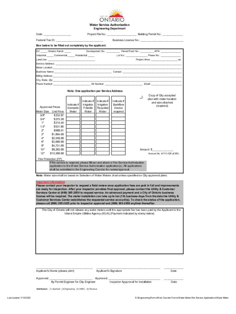 Get the free Water Service Authorization
