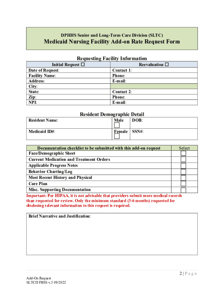 Get the free Medicaid Nursing Facility Addon Rate Request