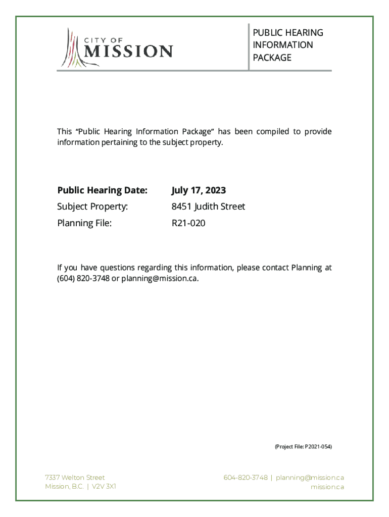 PUBLIC HEARING INFORMATION Packages Public Hearing Information Package has been compiled to provide information pertaining to the subject property. Public Hearing Date:July 17, 2023Subject Property:8451