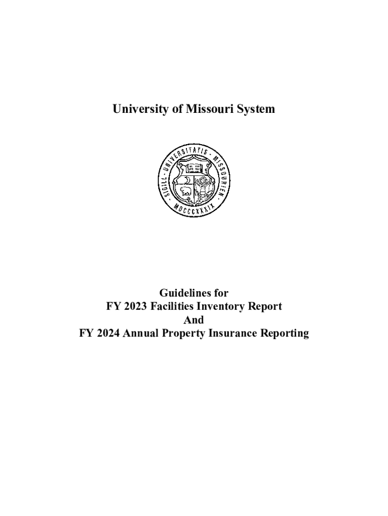 University of Missouri SystemGuidelines for FY 2023 Facilities Inventory Report And FY 2024 Annual Property Insurance ReportingTable of Contents 1.0Introduction ...................................................................................................................................