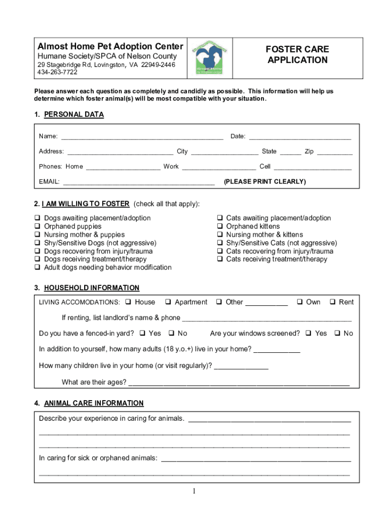 Email, fax, or share your nelson county animal shelternelson form via URL. You can also download, print, or export forms to your preferred cloud storage service.
