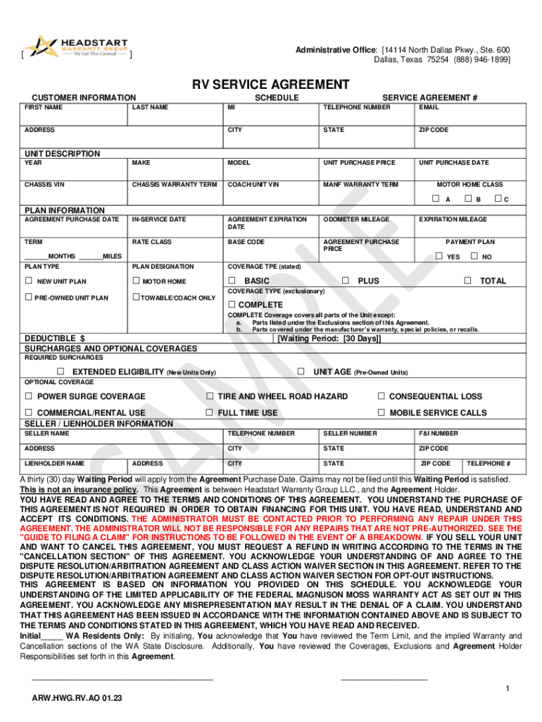 Dallas, Texas 75254 (888) 9461899]]RV SERVICE AGREEMENT