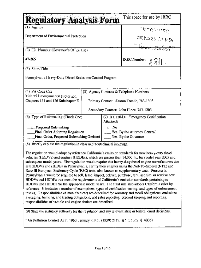 This space for use by IRC (1) Agency r f r ? I, Department of Environmental ProtectionMKM2S L(2) LD. Number (Governor\'s Office Use) #7365IRRC Number:NMR : iij$Jo;// O h(3) Short Title Pennsylvania