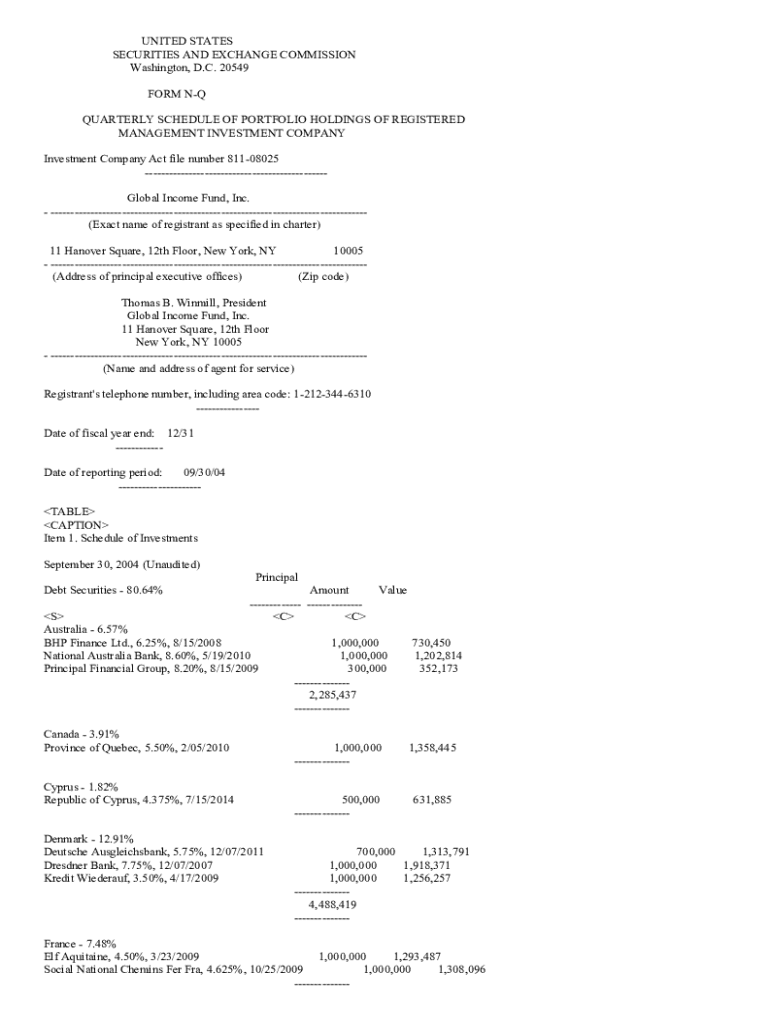 UNITED STATES SECURITIES AND EXCHANGE COMMISSION Washington, D.C. 20549 FORM NO QUARTERLY SCHEDULE OF PORTFOLIO HOLDINGS OF REGISTERED MANAGEMENT INVESTMENT COMPANY Act file number 81108025 Global